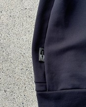 曲線デザイン、ハイネック、ジャスト目サイジング、短丈かつ袖丈は長めの近未来的デザイン。
